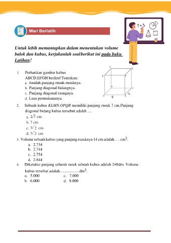 balok dan kubus, kerjakanlah soal berikut ini pada buku