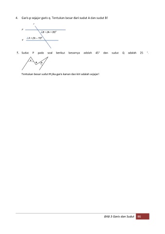 4. Garis p sejajar garis q. Tentukan besar dari sudut A dan sudut B!
