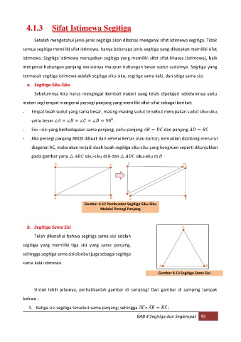 diagonal AC, maka akan terjadi duah buah segitiga siku-siku yang kongruen seperti ditunjukkan