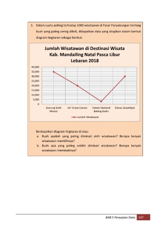 5. Dalam suatu polling terhadap 1000 wisatawan di Pasar Panyabungan tentang