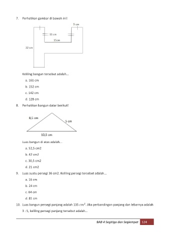 10. Luas bangun persegi panjang adalah 135 . Jika perbandingan panjang dan lebarnya adalah