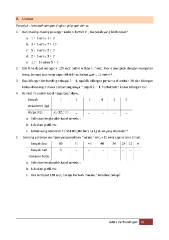 5. Seorang peternak mempunyai persediaan makanan untuk 80 ekor sapi selama 3 hari.