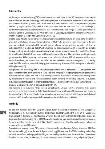 Starting from December 2012, three European hospitals that are experienced in delivering CRT care, participated in the development of a model CRT-care pathway (The Liverpool Heart and Chest Hospital in the UK, The Copenhagen Rigshospitalet in Denmark, and The Maastricht University Medical Centre in the Netherlands). These centres are large referral centres (averaging 150 to 300 CRT device implantations a year), experiencing difficulties in structuring their care for CRT patients. They were selected based on their experience in CRT and their willingness to evaluate and reorganise their current CRT practice.