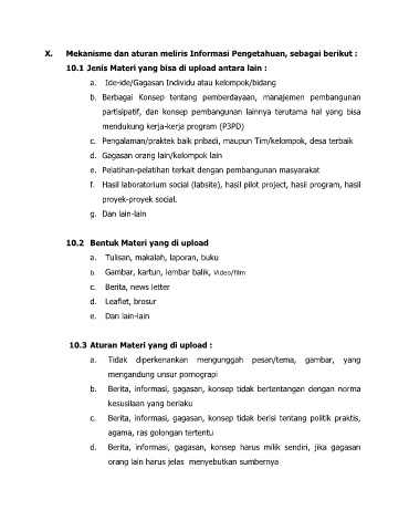 X. Mekanisme dan aturan meliris Informasi Pengetahuan, sebagai berikut :