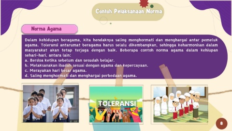 Contoh Pelaksanaan Norma C o n t o h P e l a k s a n a a n N o r m a Norma Agama 8