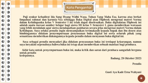 limpahan rahmat dan karunia-Nya sehingga Buku Digital atau Flipbook mengenai materi Norma