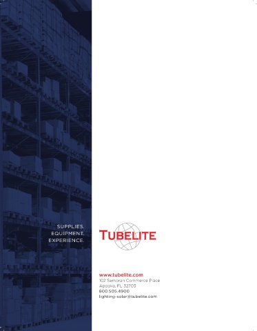 SUPPLIES. EQUIPMENT. EXPERIENCE. www.tubelite.com 102 Semoran Commerce Place Apopka, FL 32703 800.505.4900 lighting-solar@tubelite.com