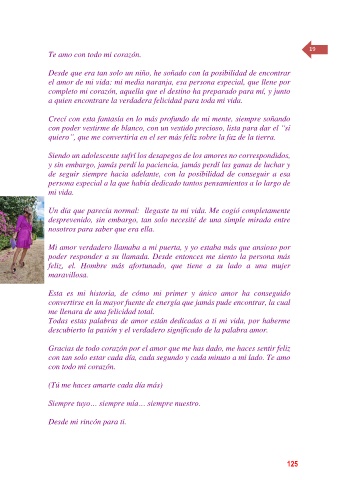 con poder vestirme de blanco, con un vestido precioso, lista para dar el “sí