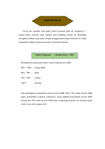kurang dari 70% maka peserta didik harus mengulang kegiatan ini, terutama pada