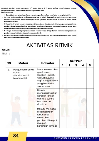 5 = Saya memahami penjelasan dosen secara verbal dan mampu mempraktikkan gerakan sesuai