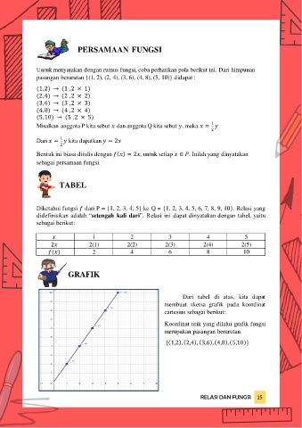pasangan berurutan {(1, 2), (2, 4), (3, 6), (4, 8), (5, 10)} didapat :