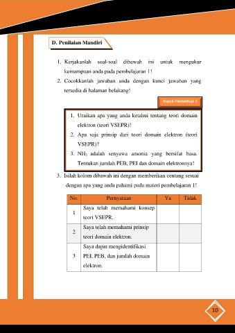 Tentukan jumlah PEB, PEI dan domain elektronnya!