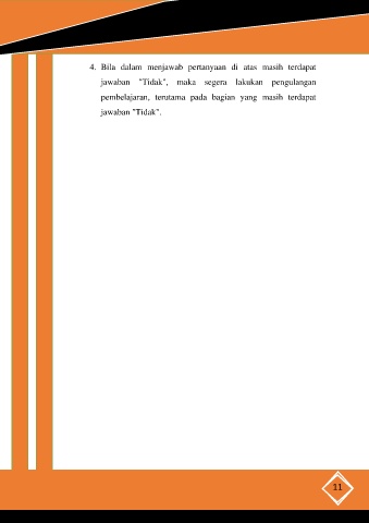 4. Bila dalam menjawab pertanyaan di atas masih terdapat jawaban "Tidak", maka segera lakukan pengulangan pembelajaran, terutama pada bagian yang masih terdapat jawaban "Tidak". 11