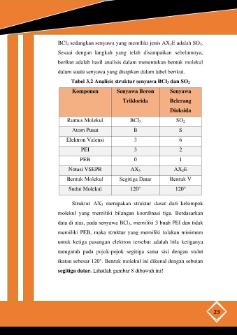 Tabel 3.2 Analisis struktur senyawa BCl3 dan SO2