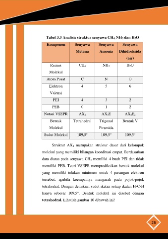 Tabel 3.3 Analisis struktur senyawa CH4, NH3 dan H2O