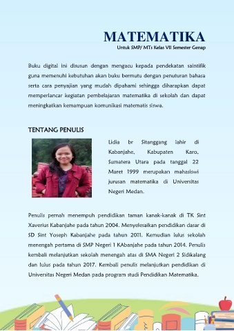 menengah pertama di SMP Negeri 1 KAbanjahe pada tahun 2014. Penulis
