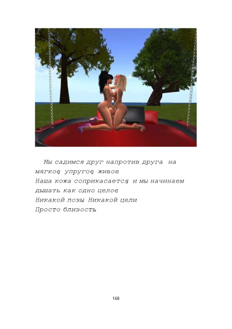 Мы садимся друг напротив друга на мягкое, упругое, живое. Наша кожа соприкасается, и мы начинаем дышать как одно целое. Никакой позы. Никакой цели. Просто близость. 168