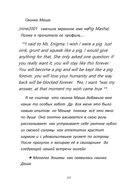 ( n i n e 2 0 0 1 сменила экранное имя на P i g M a s h a ) .