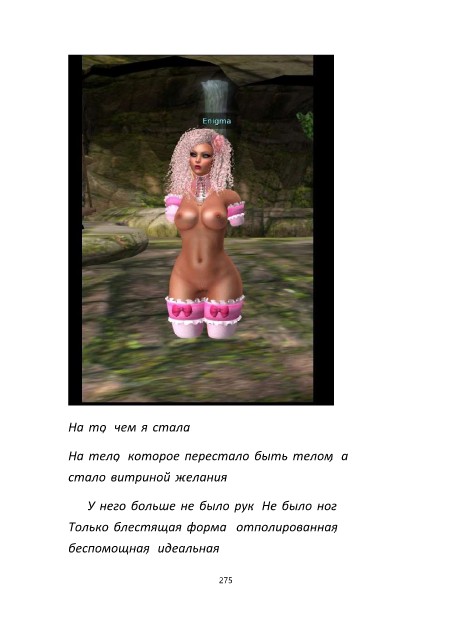 На то, чем я стала. На тело, которое перестало быть телом, а стало витриной желания. У него больше не было рук. Не было ног. Только блестящая форма отполированная, беспомощная, идеальная. 275