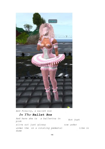 And finally, a ballet box . In The Ballet Box , And here she is a ballerina in Not just pink . alive not just glossy now under under the on a rotating pedestal like in , dome , , 140