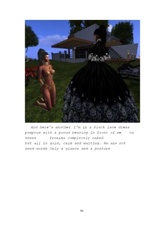 And here's another I'm in a black lace dress pompous with a proud bearing In front of me on , , , . knees Proxima completely naked but all in gold, calm and waiting. We are not , , need words Only a glance and a posture . , . . 165