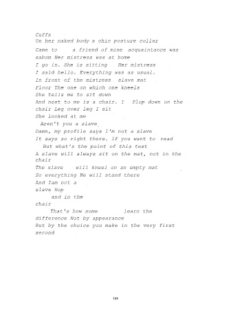 A slave will always sit on the mat, not in the
