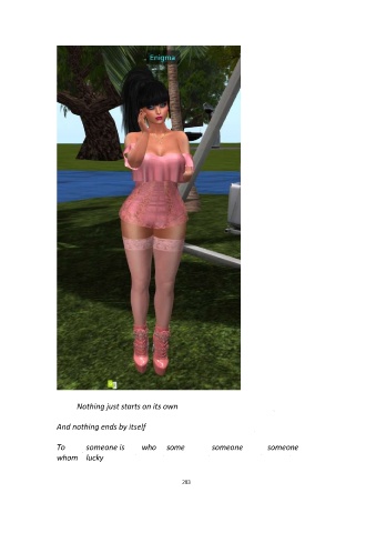 Nothing just starts on its own . And nothing ends by itself . To someone is who some someone someone whom lucky , - - , - - 203
