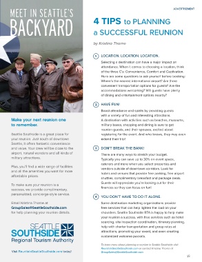 To learn more about planning a reunion in Seattle Southside visit