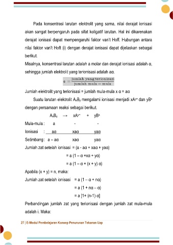 sehingga jumlah elektrolit yang terionisasi adalah aα.