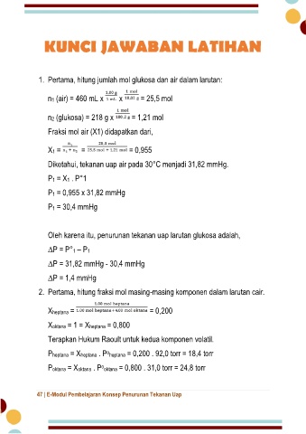 47 | E-Modul Pembelajaran Konsep Penurunan Tekanan Uap