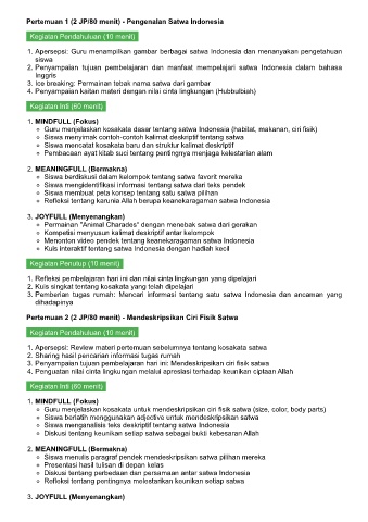 1. Apersepsi: Guru menampilkan gambar berbagai satwa Indonesia dan menanyakan pengetahuan