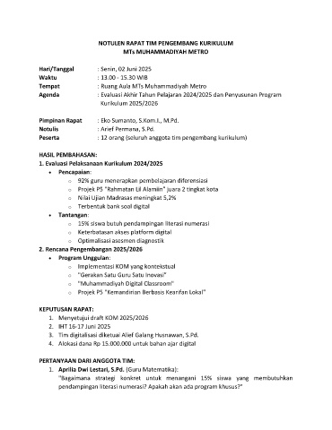 NOTULEN RAPAT TIM PENGEMBANG KURIKULUM