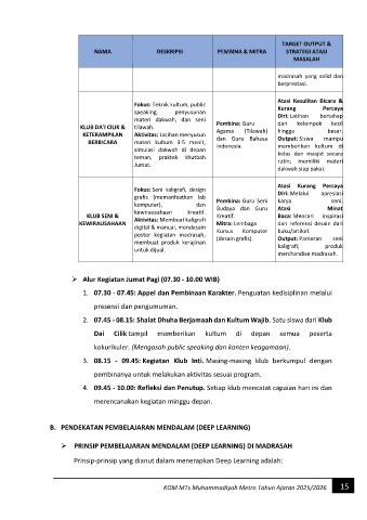 2. 07.45 - 08.15: Shalat Dhuha Berjamaah dan Kultum Wajib. Satu siswa dari Klub