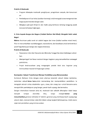 Dengan internalisasi keenam cinta ini, madrasah dan sekolah diharapkan tidak hanya