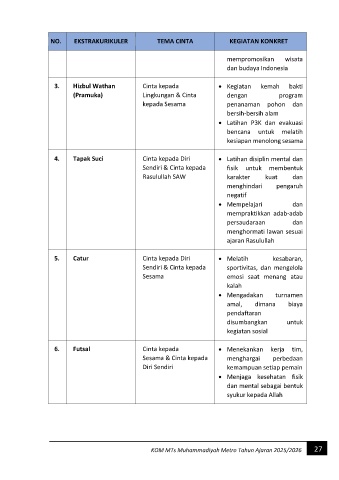 NO. EKSTRAKURIKULER TEMA CINTA KEGIATAN KONKRET