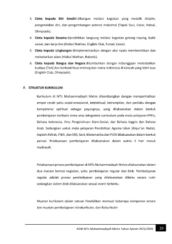 Kurikulum di MTs Muhammadiyah Metro dikembangkan dengan memperhatikan