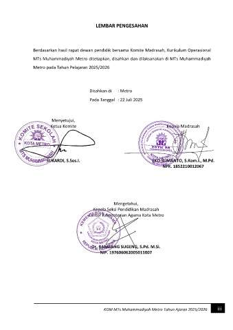KOM MTs Muhammadiyah Metro Tahun Ajaran 2025/2026 iii