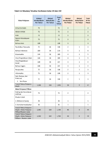 Tabel 3.2 Muatan/ Struktur Kurikulum kelas VII dan VIII