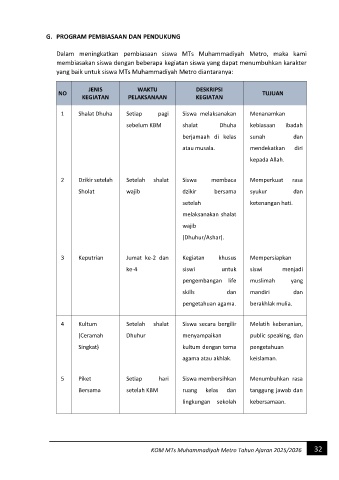 G. PROGRAM PEMBIASAAN DAN PENDUKUNG