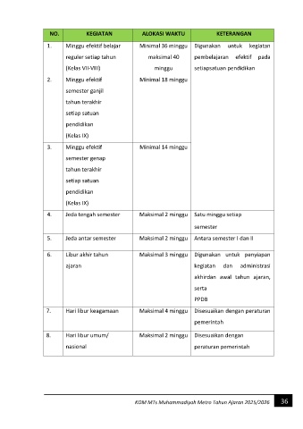 1. Minggu efektif belajar Minimal 36 minggu Digunakan untuk kegiatan