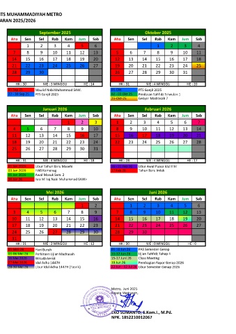 KALENDER PENDIDIKAN MTS MUHAMMADIYAH METRO