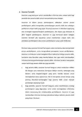 a. Bagi peserta didik, asesmen formatif berguna untuk melakukan refleksi