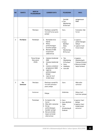 2 Per Bulan Pemetaan 1. Kumpulan nilai • Guru • Laporan