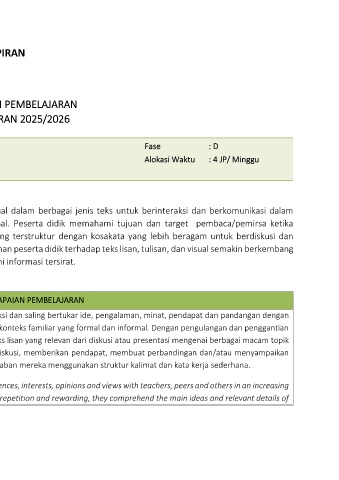 Mata Pelajaran : Bahasa Inggris Fase : D