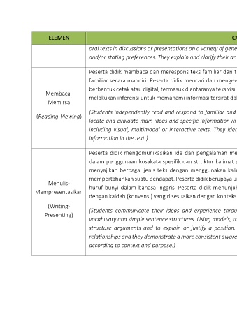 berbentuk cetak atau digital, termasuk diantaranya teks visual, multimodal atau interaktif. Peserta didik mengidentifikasi tujuan teks dan mulai