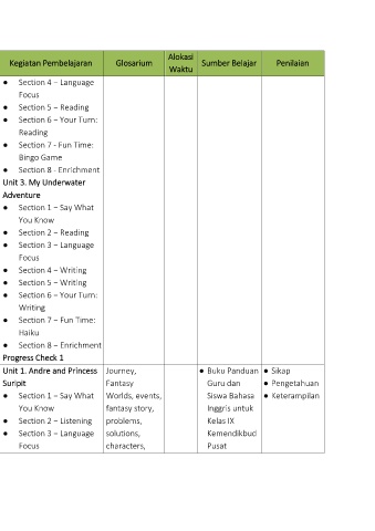 3.1  Connect and   Journey  ● Connect and   ●  Beriman,   Journey,   Unit 1. Andre and Princess  Journey,      ● Buku Panduan  ● Sikap