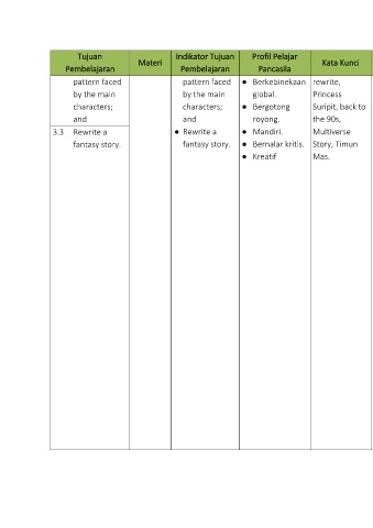 pattern faced           pattern faced  ●  Berkebinekaan  rewrite,   ●  Section 4 − Listening   rewrite,           Kurikulum dan