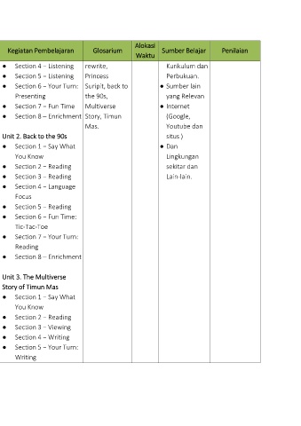 pattern faced   pattern faced  ●  Berkebinekaan  rewrite,   ●  Section 4 − Listening   rewrite,   Kurikulum dan