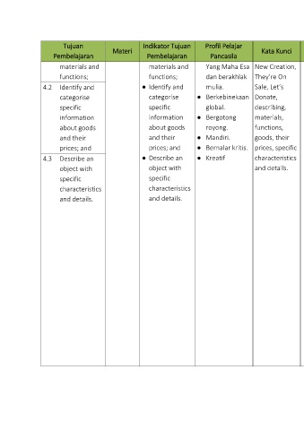4.2  Identify and          ● Identify and    mulia.        Sale, Let’s   ●  Section 2 − Listening   Sale, Let’s        Kemendikbud