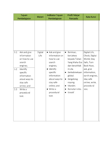 5.1  Ask and give   Digital   ● Ask and give   ●  Beriman,   Digital Life,   Unit 1. Let’s Check the   Digital Life,      ● Buku Panduan  ● Sikap